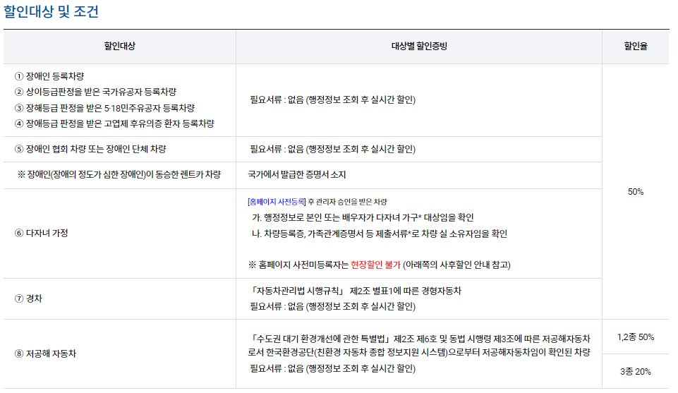 증빙서류 미비 등으로 할인을 받지 못한 경우 출차 후 30일 이내에 관련 서류 일체를 제출하면 사후 할인도 가능하다.