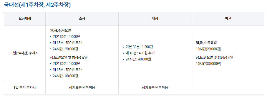 김포공항 자체 주차 요금
