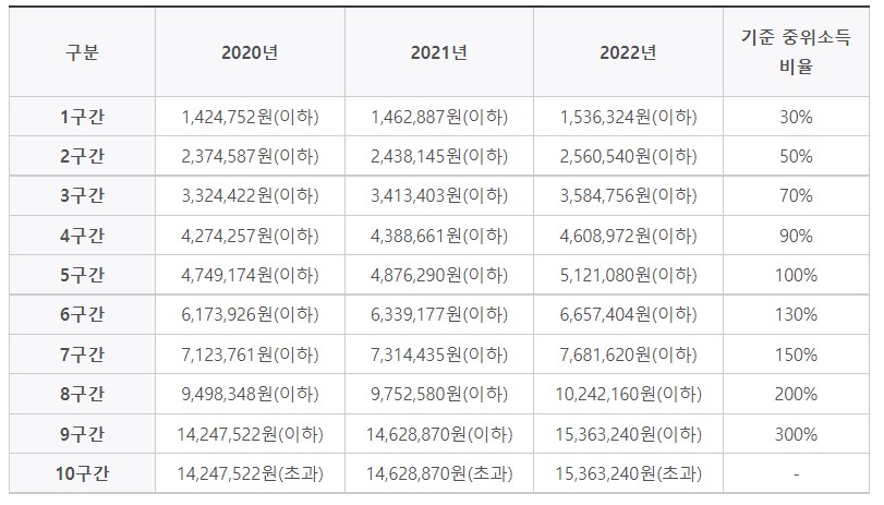대신 참고자료로 최근 3년간의 학자금 지원 구간 경곗값 표를 확인하기 바란다.