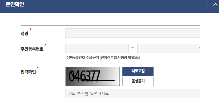 아래 배너를 통해 습득조회 홈페이지에 들어간 후 성명, 주민등록번호를 입력하여 자신의 주민등록증이 습득되었는지 조회합니다.