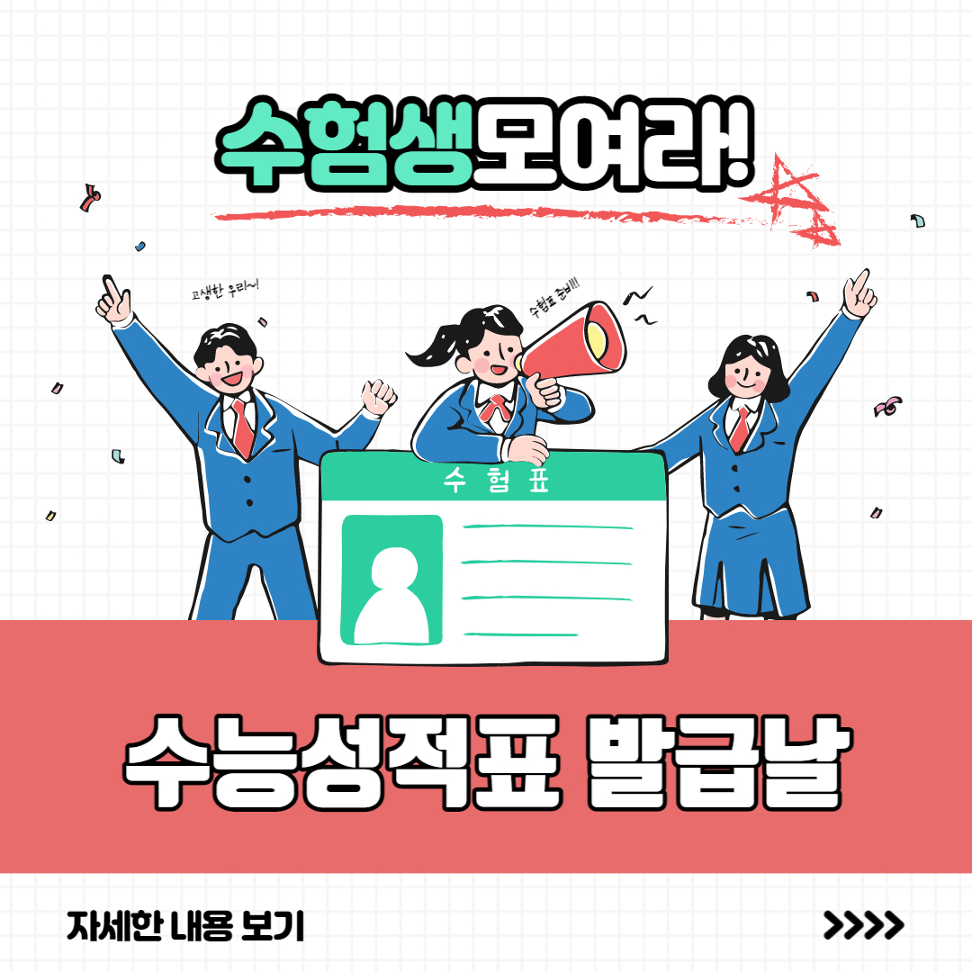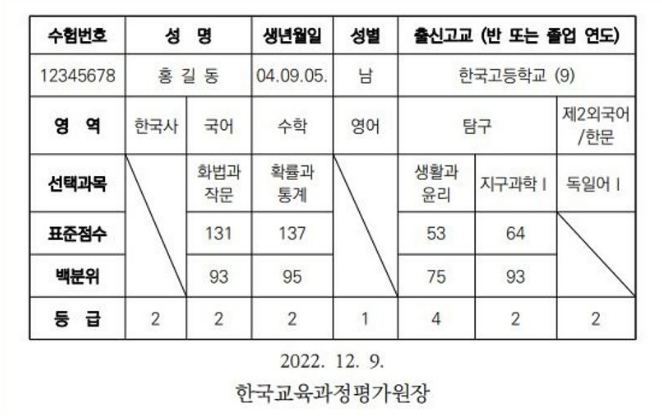 2022년 12월 9일 금요일이면 2023학년도 대학 수학능력시험 성적 통지표가 교부된다.