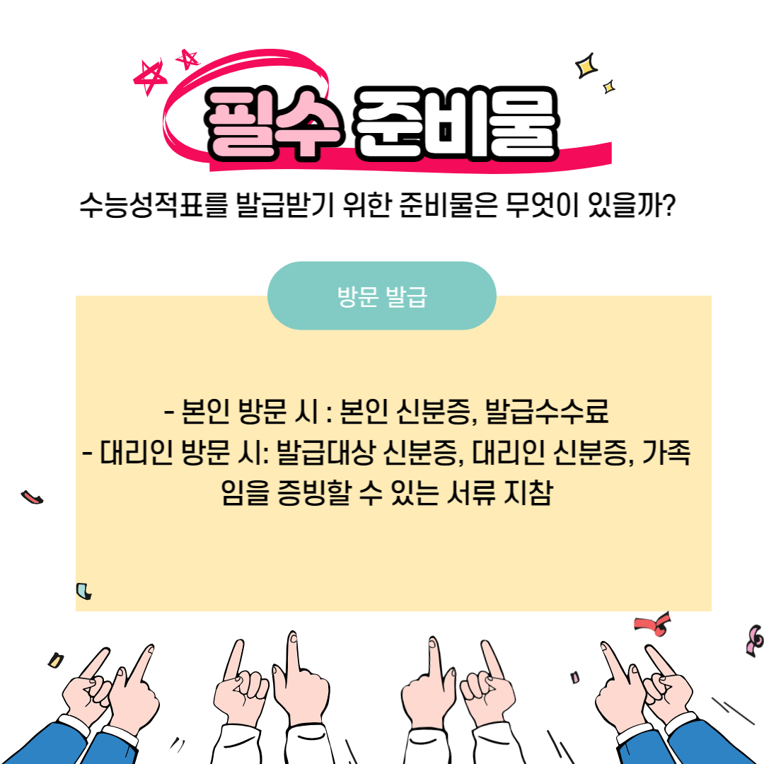 물론 지원 학교에서 수능성적표를 배부해주지만 가기 힘들거나 미리 확인하고자 하는 사람들에게는 온, 오프라인의 발급 과정이 존재한다.
