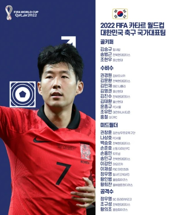 카타르 월드컵 축구대표팀의 최종 명단이 발표되었습니다.