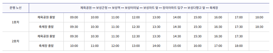 먼저 보성읍에서 축제장까지 운행하는 버스는 역, 터미널을 거치기에 외지에서 방문하는 방문객들이 이용하기 좋습니다.
