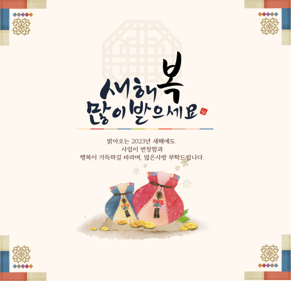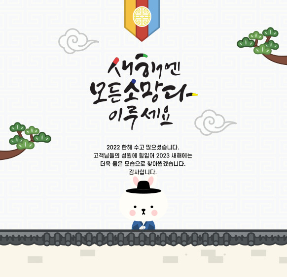 - 지난 한 해 보내주신 성원에 감사드립니다. 밝아오는 2023년에도 변함없는 사랑 부탁드리며 항상 건강하시고 복 많이 받으세요.