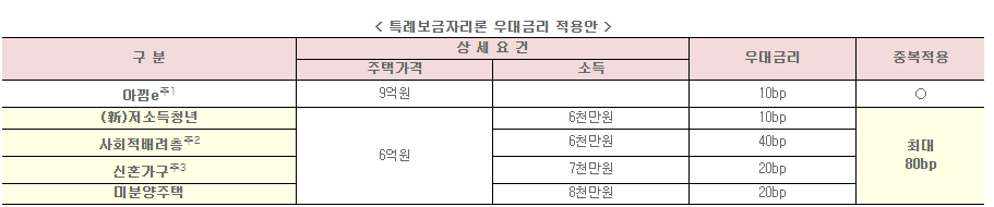 또한 기존과는 다르게 새로운 우대금리가 신설되었다. 저소득청년 우대금리가 신설되었으며 차주 특성에 따라 최대 90bp까지 금리우대가 가능하다.